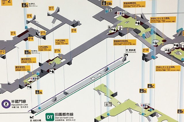 半蔵門線・副都心線渋谷駅のわかりやすい構内図、待ち合わせ場所一覧のマップを作成しました。