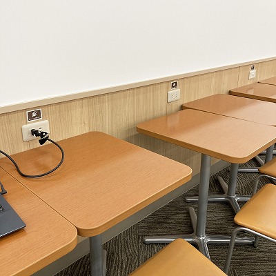 電源付きの席は基本的にありませんが、入口近くにコンセントがあり、コンセント横の席が空いていれば無料で利用ができます。