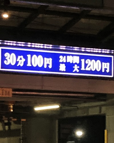 いずれも30分毎100円ですが、最大料金が設けられており、入庫後24時間まで1,200円です(最終確認日:2025年12月30日)。