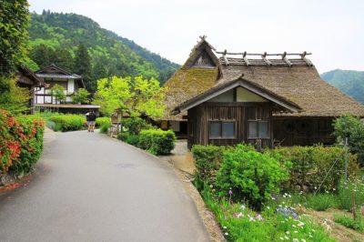 風情あるかやぶき屋根の家が軒を連ねています。